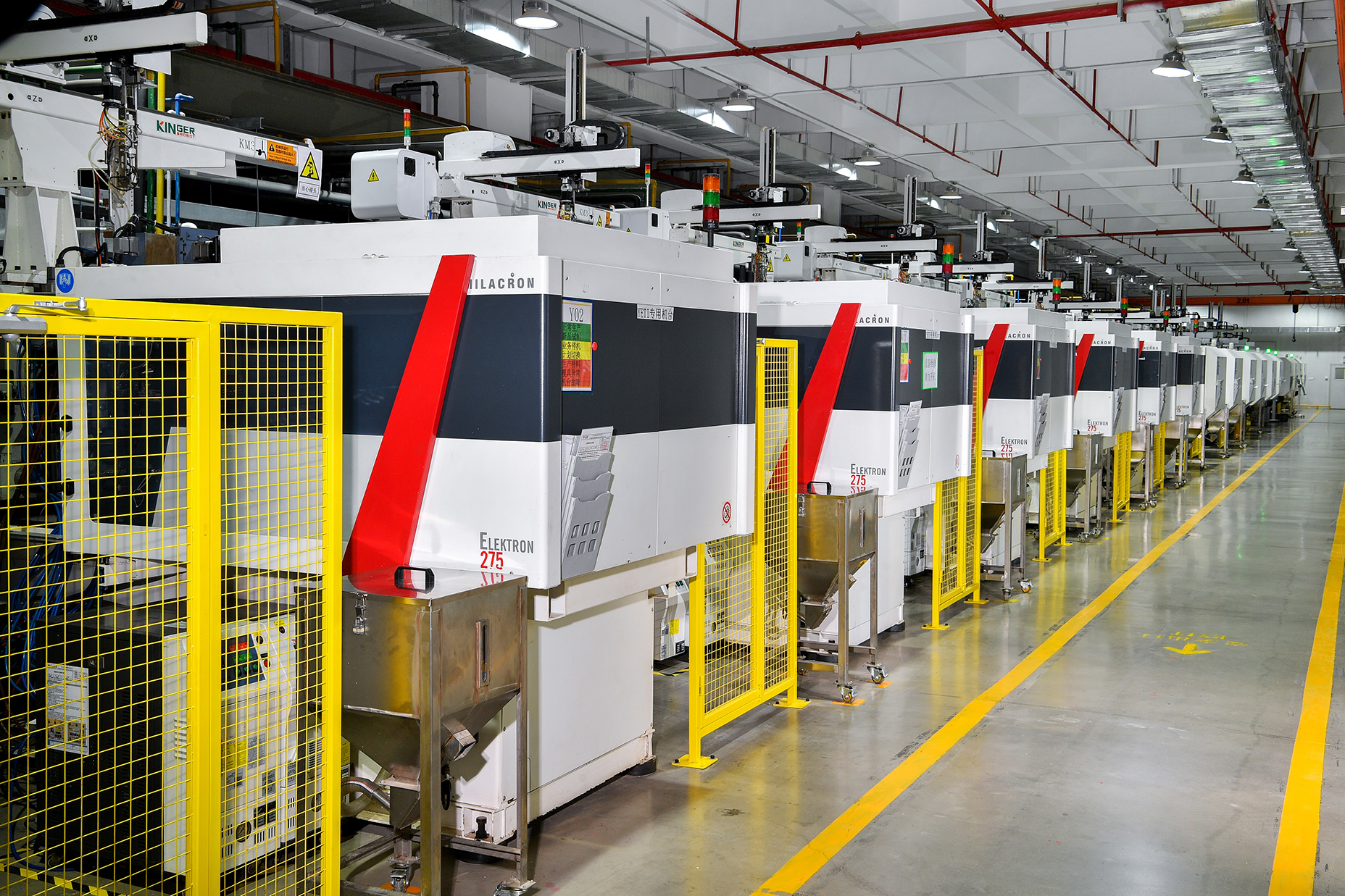 ■ 公司拥有40吨到2100吨注塑机(日本TOYO、FANUC、JSW等高速全电动注塑机,长飞亚、TOYO双色全电动注塑机等),全部配备机械手、机器人、全自动供料系统,模内视频监控、注塑自动冲切一体化等设备,实现高效、安全、稳定的注塑工艺流程。